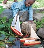 Magic Cabin , Spruce Wood Toy Sailboat. Made by a company that has specialized in boat models since 1898, these Spruce Wood Toy Boats really float! The Sailboat has a metal keel and cloth sails. The Catamaran has twin hulls and a cloth sail. Young sailors will love setting these boats off to sea-whether they spread their sails in the bathtub, pool, or pond. Made in Germany. Features of both: Made from high-quality spruce wood Decorated with waterproof paints Realistic details Really floats For ages 3 and up. Size Catamaran: 10"L x 10"H Sailboat: 12"L x 13"H (Read More)
