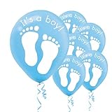 - Package contains 6 blue balloons with "It's a Boy!" and footprint design