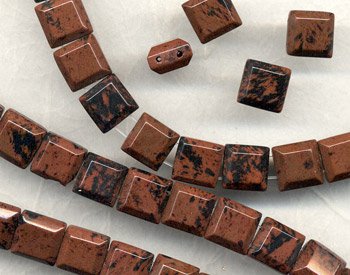- Unusual square gemstone beads have bevel cut edge faceting and two holes - perfect for bracelets! Made from Mahogany Obsidian with lots of mahogany brown color and scattered black patterning.